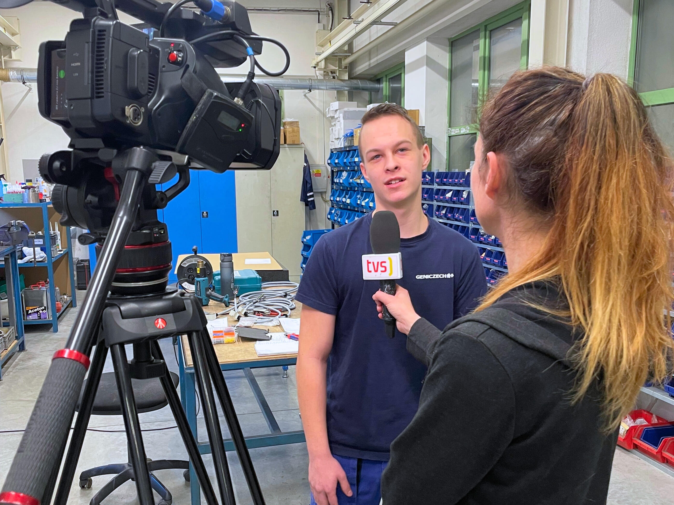 Marek, Martin, Matěj a druhý Martin byli v hlavní roli reportáže, kterou jsme natáčeli ve spolupráci s televizí TVS. Těšíme se na výsledek, který z toho vznikne, a věříme, že tím pomůžeme žákům devátých ročníků, aby volili jednoznačně strojařinu.