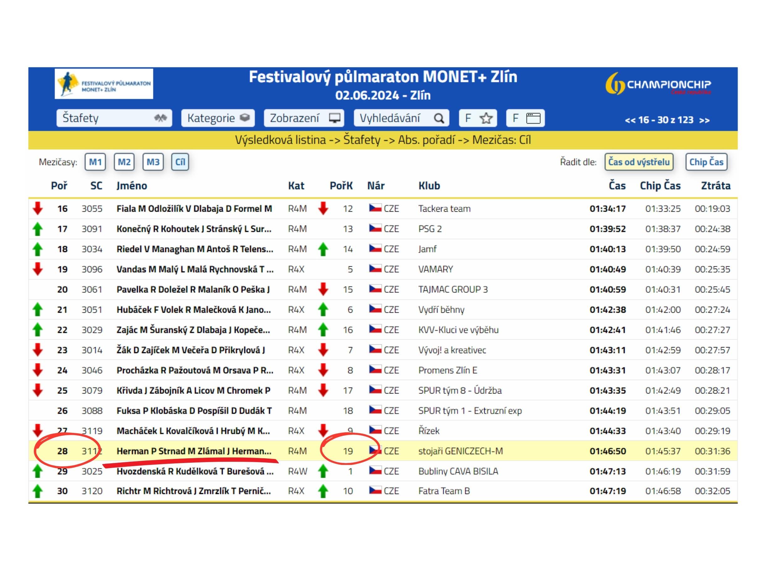Obsadili úžasné 28. místo z celkového počtu 123 týmů a v kategorii Muži dokonce 19. místo! Moc děkujeme a ještě jednou gratulujeme.